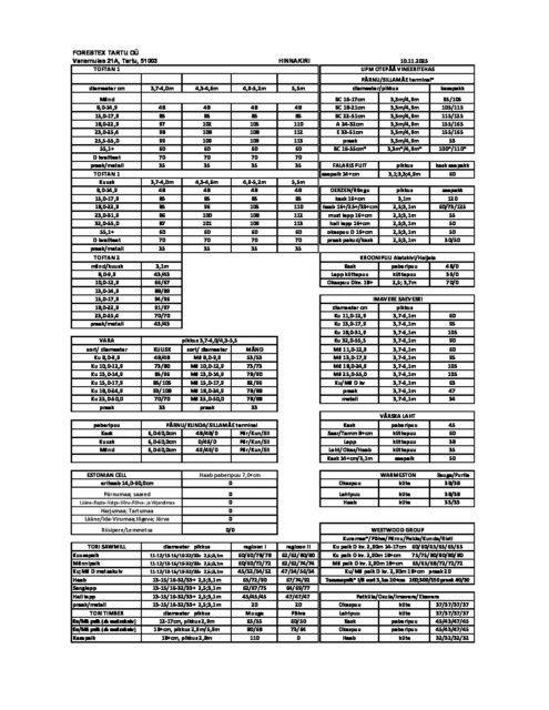 Forestex Tartu OÜ hinnakiri 10.11.2025
