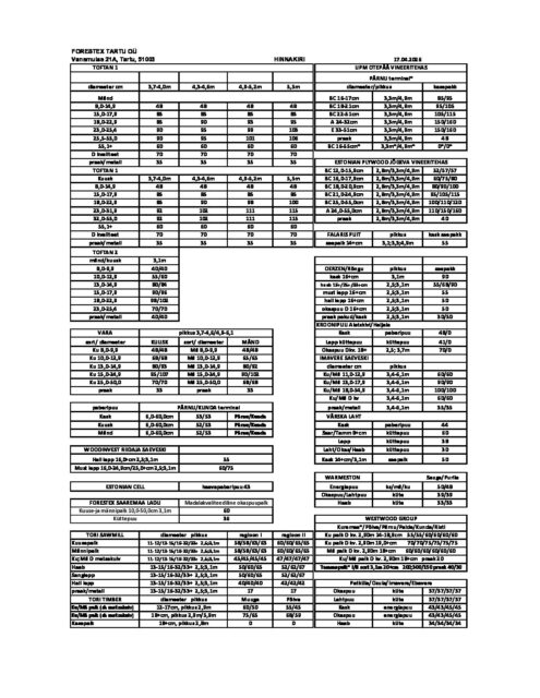 Forestex Tartu OÜ hinnakiri 17.04.2026