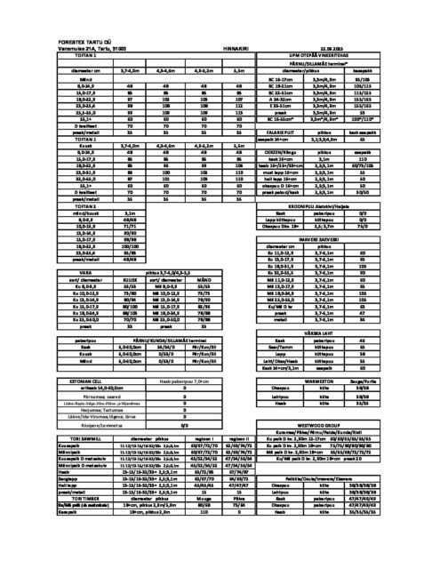 Forestex Tartu OÜ hinnakiri 22.09.2025