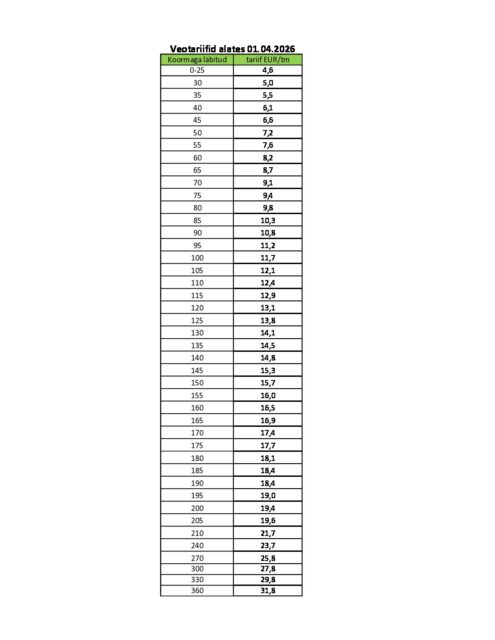 VEOTARIIFID 01.04.2026